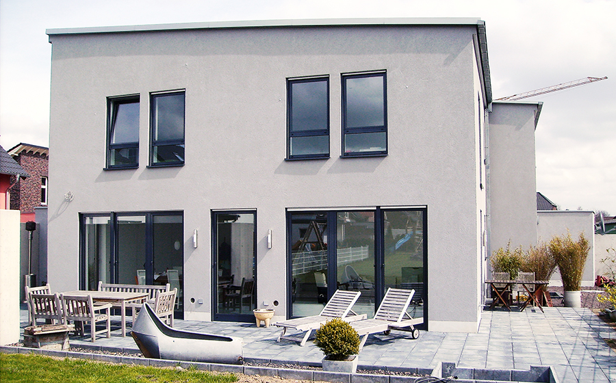 Familiendomizil. Sorgfältig ausgewählte Oberflächenbeschichtungen für die Profile der zahl- und variantenreichen Schüco Systemfenster machen das Ergebnis modern und elegant.
